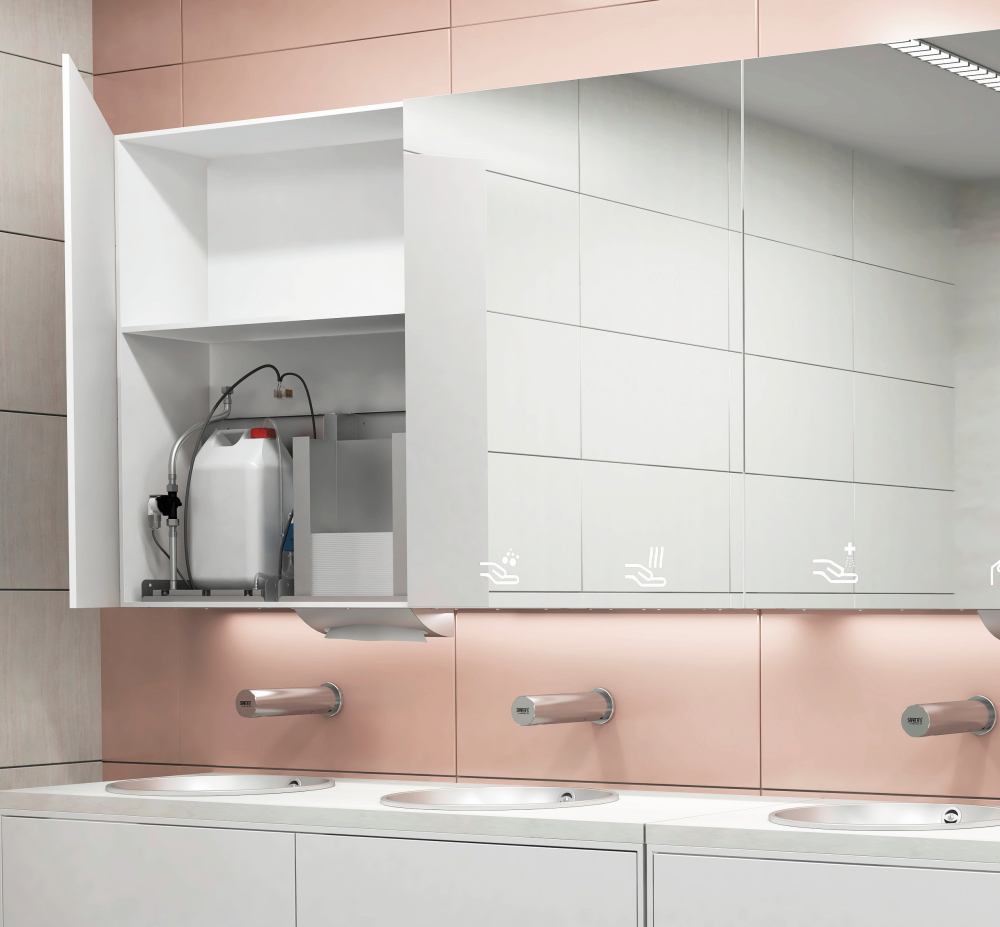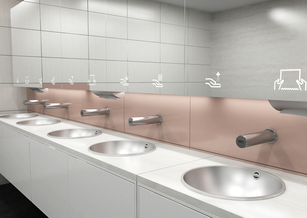 Teraz wiemy! Za lustrem znajdują się dozowniki mydła Sanela, baterie, suszarki do rąk lub dozowniki ręczników papierowych. Dołącz do nas w magicznym świecie Saneli.